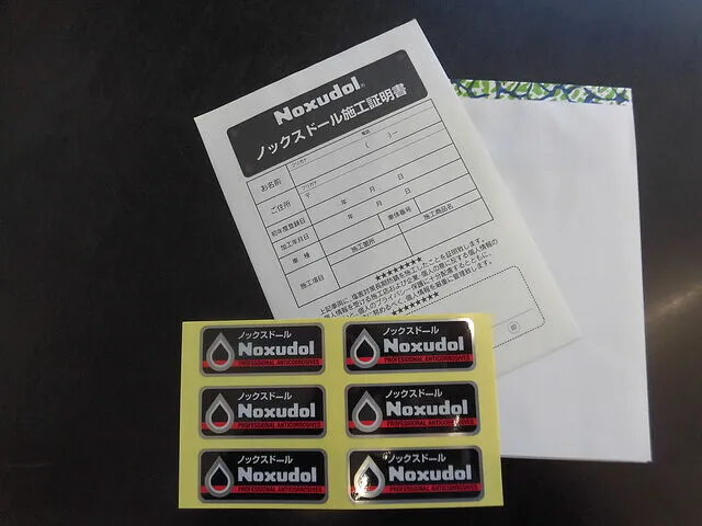 当店ではノックスドールを施工していただいたお車すべてに施工証明書を発行しています。
