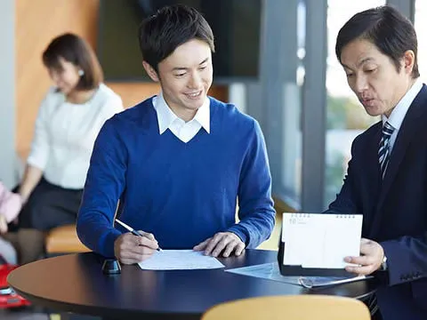 貸渡契約書を作成いたします。内容に同意のうえ、サインをいただきます。ご予定の料金も同時にお支払いください。また、レンタカーのキズやヘコミを、スタッフと一緒にご確認いただけます。